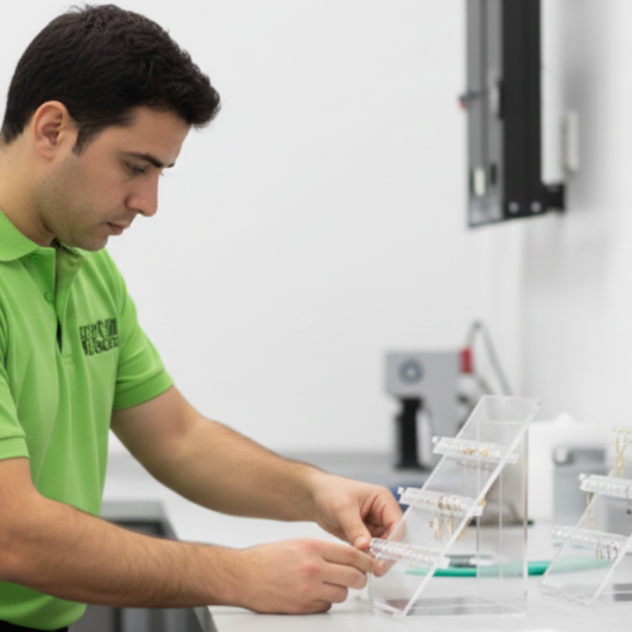 La creación de expositores para joyería es una fusión de diseño y artesanía meticulosa. Cada pieza es ensamblada a mano para crear un soporte que no solo protege la joya, sino que eleva su presentación y realza su brillo natural.