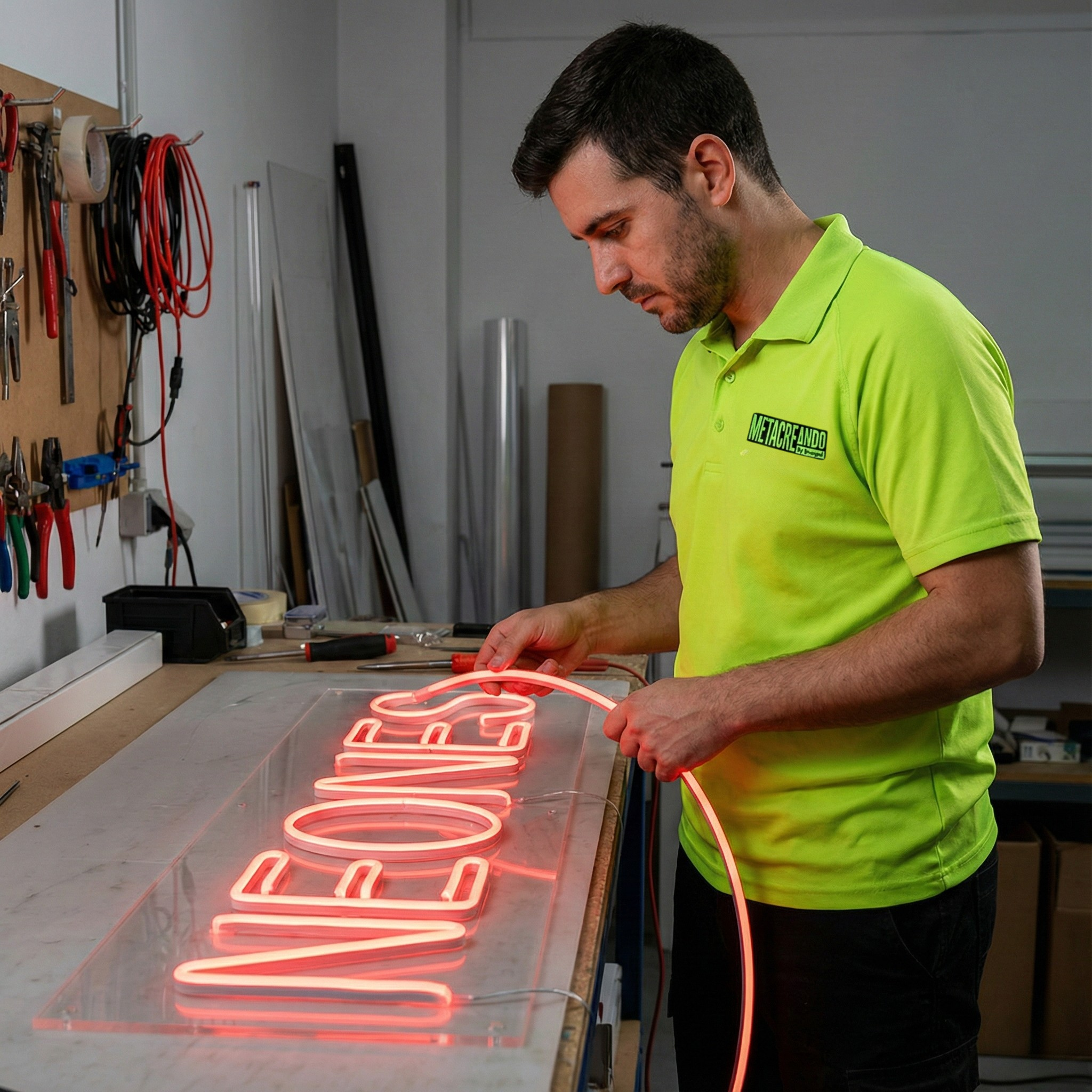 Transforma cualquier espacio con el brillo vibrante y moderno de nuestros neones LED a medida sobre metacrilato. Combinamos la estética retro del neón clásico con la eficiencia y seguridad de la tecnología LED de última generación.